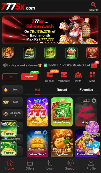 777SX Game is a modern Pakistani casino gaming platform that allows users to play games and earn real money using their mobile phones.