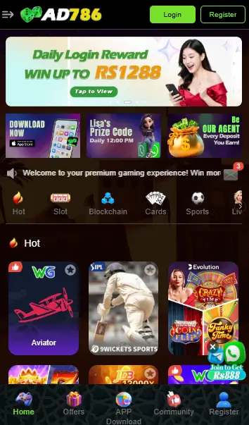 Ad786 Game is a Pakistani earning platform designed as an online casino app where users can play different games and earn real cash. The application allows users to register, deposit funds, play games, and withdraw winnings using local payment options. It works mainly on Android devices but can also be accessed through web browsers.