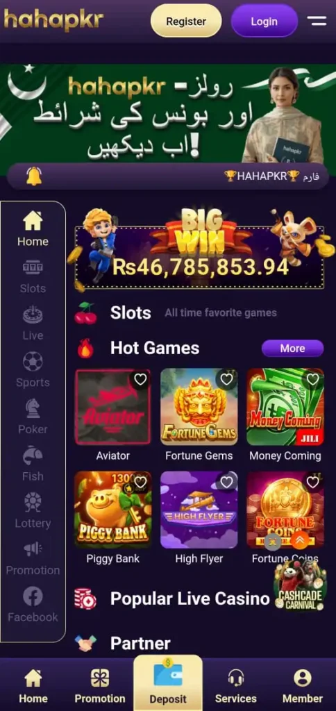 Haha Pkr Game is an online casino style platform created especially for Pakistani users who want entertainment and earning opportunities through a single application. It offers casino style services where players can enjoy games, earn rewards, and withdraw real cash using local payment methods.