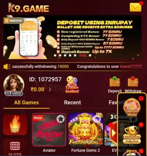 Talking about the structure of this game. When you will open this platform then you will see an interface. The interface is filled with every type of casino game, pick any casino game you want to play and then start earning money from it. This money which you will be earning in this platform can be withdrawn into any Pakistani wallet that you use. K9 APK supports a vast number of wallets in game. Which provides you a safe, secure and fast transaction.