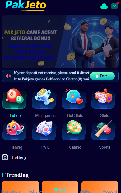 Pak Jeto Game supports secure deposits and withdrawals via JazzCash, Easypaisa, and bank transfers. Users can quickly fund their accounts and play Pakistani online earning games. Withdrawals are processed efficiently with minimal delays. The platform ensures secure payment, transparency, and easy withdrawals. Bonus redemptions are straightforward, and transaction histories provide clarity. With Easypaisa withdrawal apps 2025 integration, Pak Jeto is a reliable casino style platform for earning real money while enjoying mobile gaming.